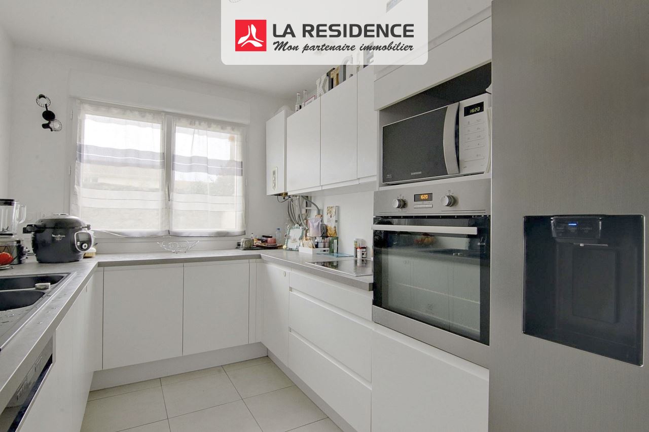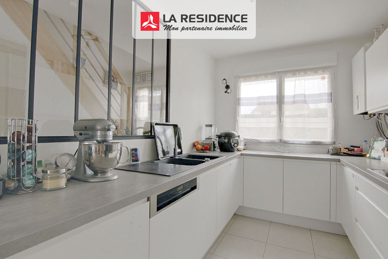 La cuisine ouverte, moderne et équipée, invite à la convivialité.