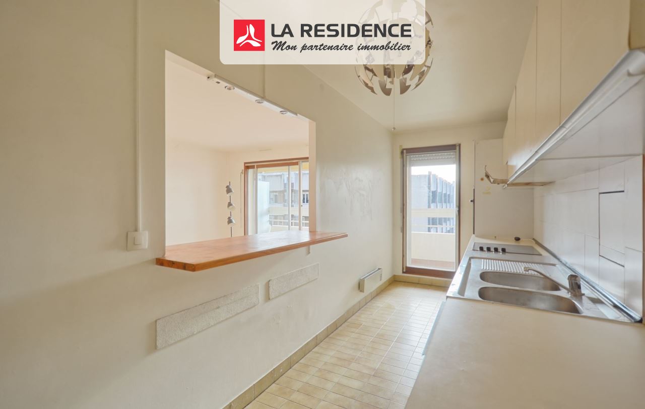 Résidence de la Belle Feuille, accès direct à la Grand Place et au centre commercial Les Passages, en étage élevé avec ascenseur d'un immeuble de standing aux parties communes rénovées, vaste appartement 3 pièces offrant: entrée, grand séjour baigné de soleil ouvrant sur beau balcon sans vis à vis, cuisine (possibilité de cuisine US et donc de créer une pièces principale séjour/cuisine US d'environ 40m2), deux chambres, salle de bains, salle de douche, WC. Quelques travaux à prévoir. Excellente distribution des pièces, toutes au calme, donnant sur jardin. Cave. Possibilité de parking en supplément dans l'immeuble en sous sol.