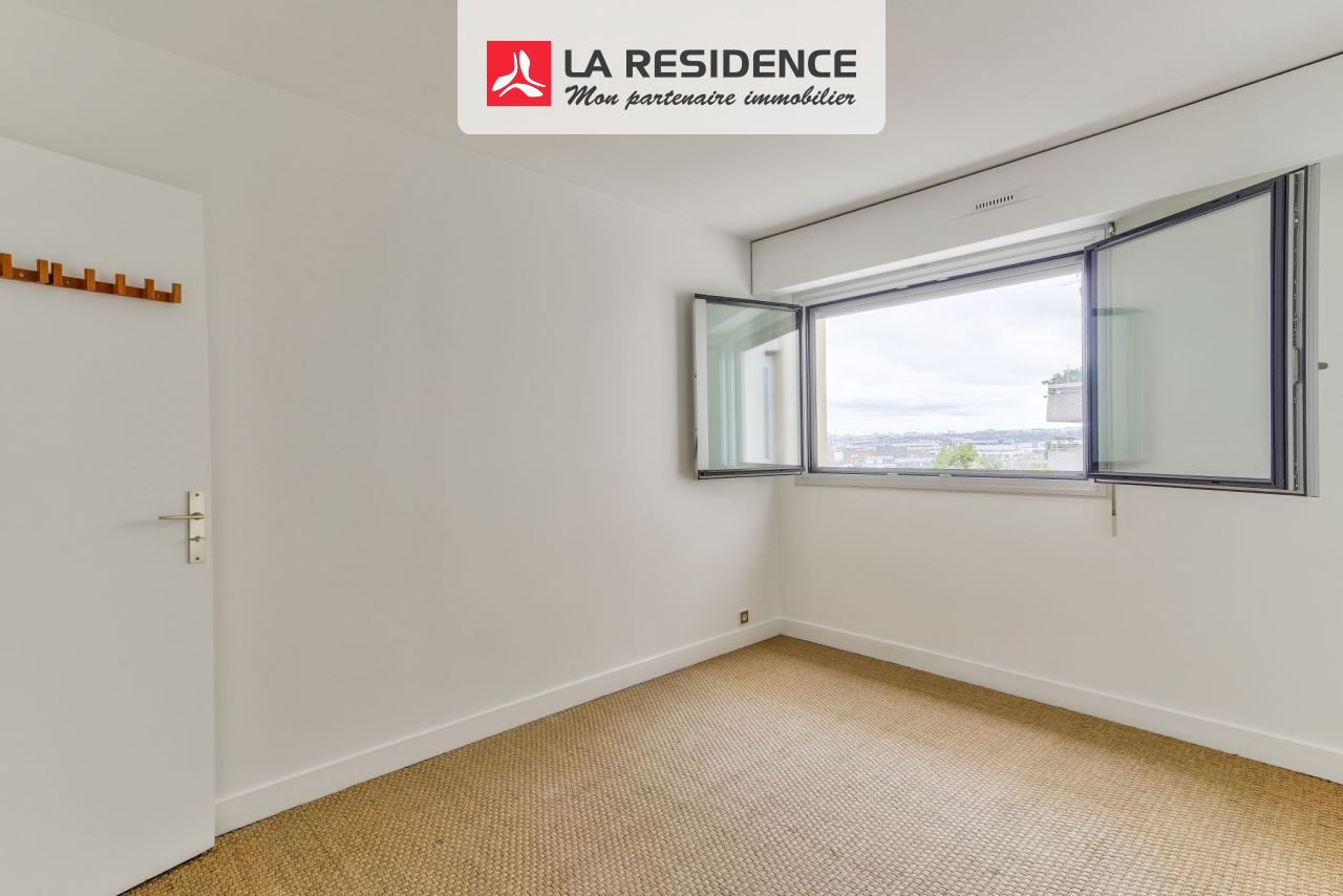Residence Belle Feuille, secteur les Passages, en étage élevé avec ascenseur d'un immeuble 1978 de standing et sécurisé aux parties communes refaites, vaste appartement 2 pièces baigné de lumière, sans vis à vis, offrant une vue Tour Eiffel. Il se compose d'une entrée avec rangements, cuisine, double séjour, salle de bains, WC, débarras. Cave. DPE D.