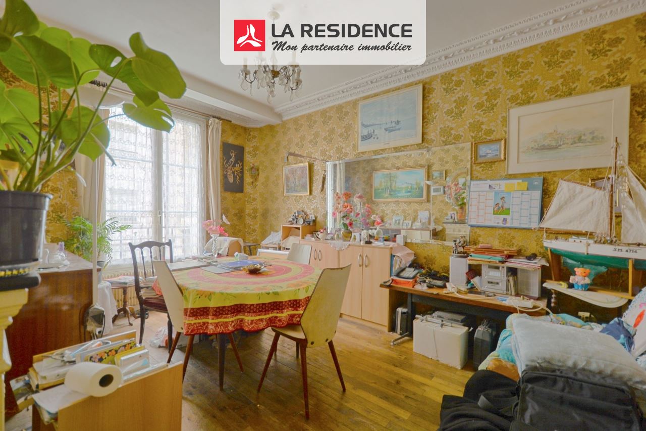 Exclusivité La Résidence. Métro Jean Jaurès. Au premier étage sans ascenseur d'un petit immeuble ancien récemment ravalé, appartement 3 pièces offrant tout le charme de l'ancien comprenant entrée, séjour, cuisine, 2 chambres, salle de bains avec WC et cave en sous-sol. Travaux de rénovation à prévoir. Possibilité de 2 caves en supplément.