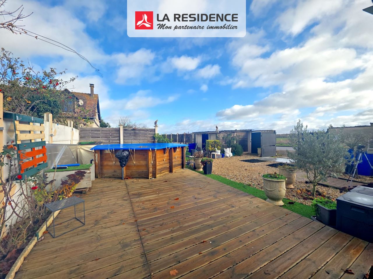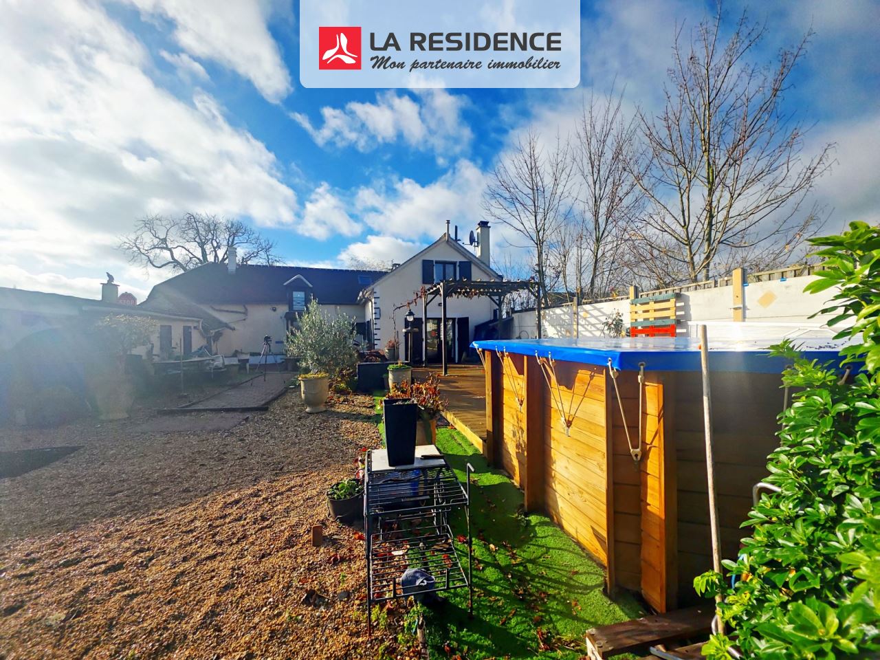 Avec son jardin bien exposé, vous disposez d'une terrasse avec piscine hors-sol, et 3 ateliers.
