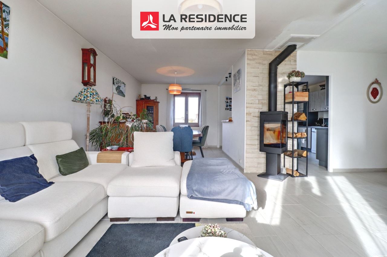 Vous trouvez: une entrée sur séjour double avec poêle à bois , une cuisine équipée semi-ouverte, 3 chambres, une salle de bain, wc séparés.