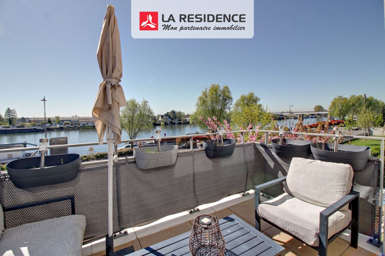 **SECTEUR FIN D'OISE** **EXCLUSIVITE LA RESIDENCE** !! Dans un cadre BUCCOLIQUE! FACE à la SEINE et au pied des LIGNES RER A, Ligne J et L! Nous vous présentons à la vente cet appartement COUP DE COEUR!! F4 en DUPLEX situé au 1er et 2eme étage sur 3! Rénové avec goût et bien agencé, il vous offre: Une entrée avec rangements, un SEJOUR DOUBLE exposé plein SUD baigné de lumière et sa TERRASSE conviviale ou vous pourrez contempler LA SEINE! Une cuisine entierement équipée prolonge le salon grâce à sa verrière! une salle d'eau avec WC complète le rez de chaussé. A l'étage : Un palier avec placard, 3 belles chambres avec RANGEMENTS dont 2 ayant VUE SUR SEINE également! Une salle de bains se trouve à l'étage ainsi que des WC séparés! En BONUS: 2 parkings SECURISES en SOUS SOL! Un environnement de qualité! ECOLES / CENTRE VILLE/ QUAI DE SEINE! CLEFS EN MAIN, ne tardez plus! Appelez votre conseiller LA RESIDENCE au 01 39 72 00 20! Bien mis en vente par Mr Guilmin Steffen. Diagnostics en cours et Pas de procédure en cours! A très vite!