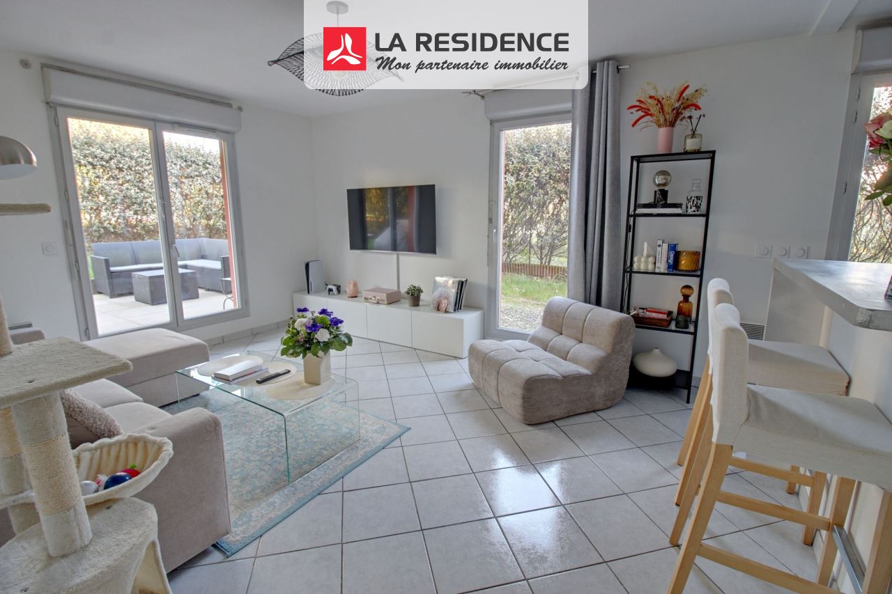 Bel appartement dans une résidence de STANDING ! **EXCLUSIVITE LA RESIDENCE**A proximité des TRANSPORTS, de la GARE ligne J Transition RER A et ligne L, des ECOLES et des commerces ainsi que du CENTRE VILLE, il présente : une entrée sur SEJOUR LUMINEUX avec Cuisine US toute équipée donnant sur une Terrasse et un Beau JARDIN ! un couloir desservant deux belles chambres et une salle de bain récente, WC. 3 GRANDES places de parking viennent compléter ce bien dont une en SOUS SOL !Une opportunité s'offre à vous, appelez LA RESIDENCE ! 01.39.72.00.20