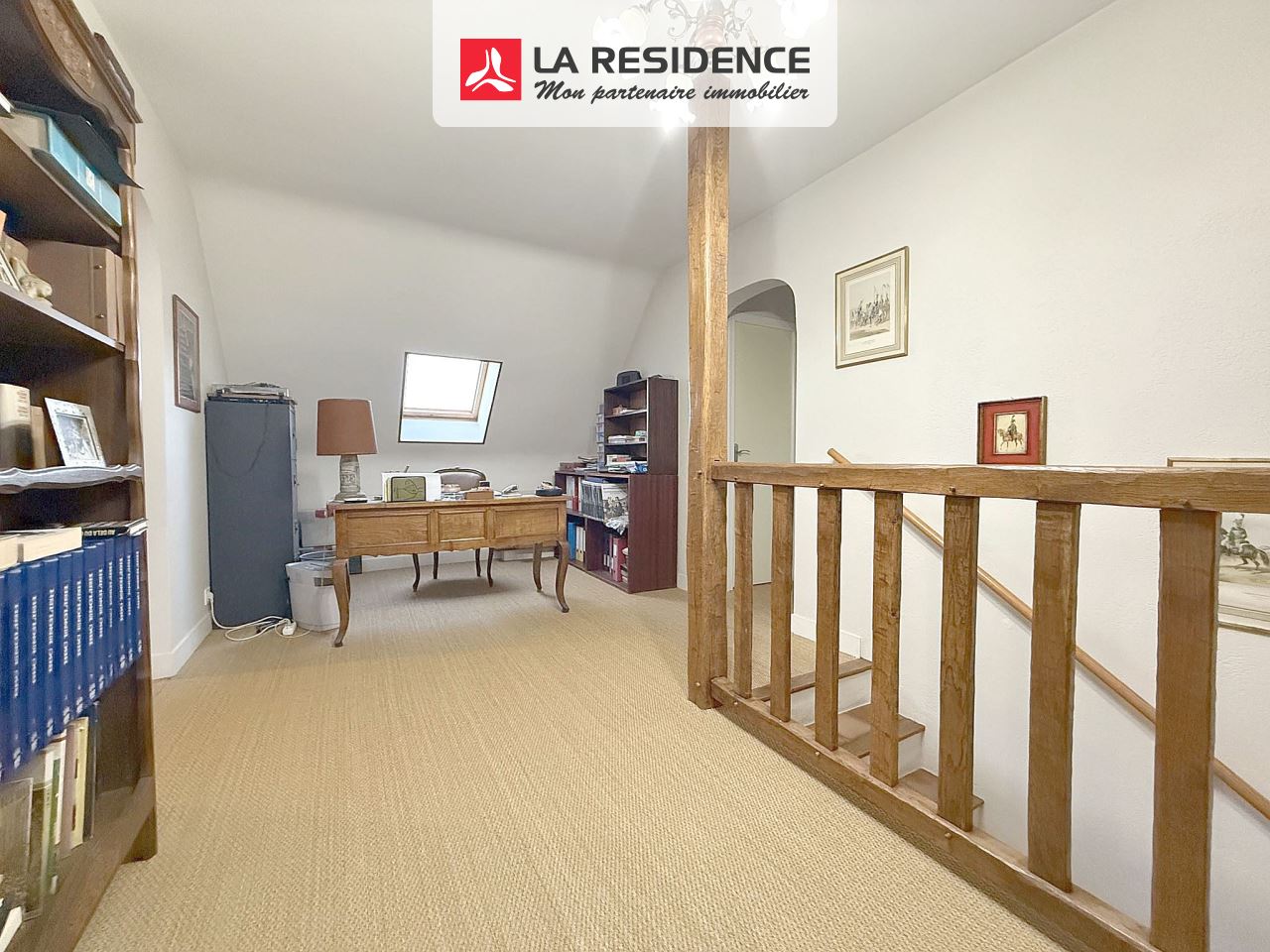 À l’étage, un grand palier aménagé en espace bureau et bibliothèque crée un lieu propice au télétravail ou à la détente. Vous y trouverez également deux grandes chambres, une salle d’eau moderne, un dressing spacieux et un WC indépendant.