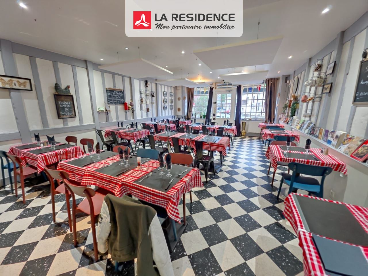 Vous avez donc 114m² en intérieur avec: salle de restauration principale avec bar, véranda, wc clients, vestiaire avec wc pour le personnel, cave partielle.