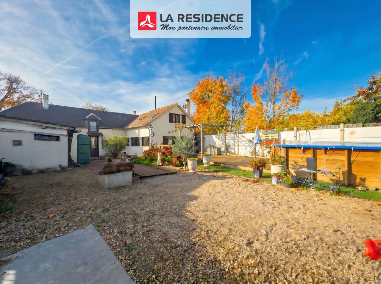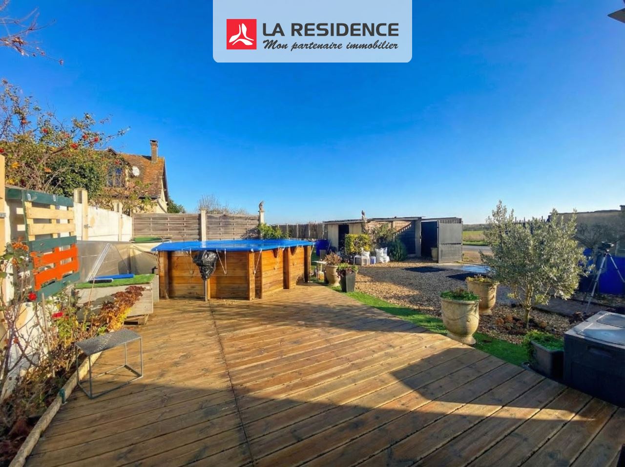Avec son jardin bien exposé, vous disposez d'une terrasse avec piscine hors-sol, et 3 ateliers.
