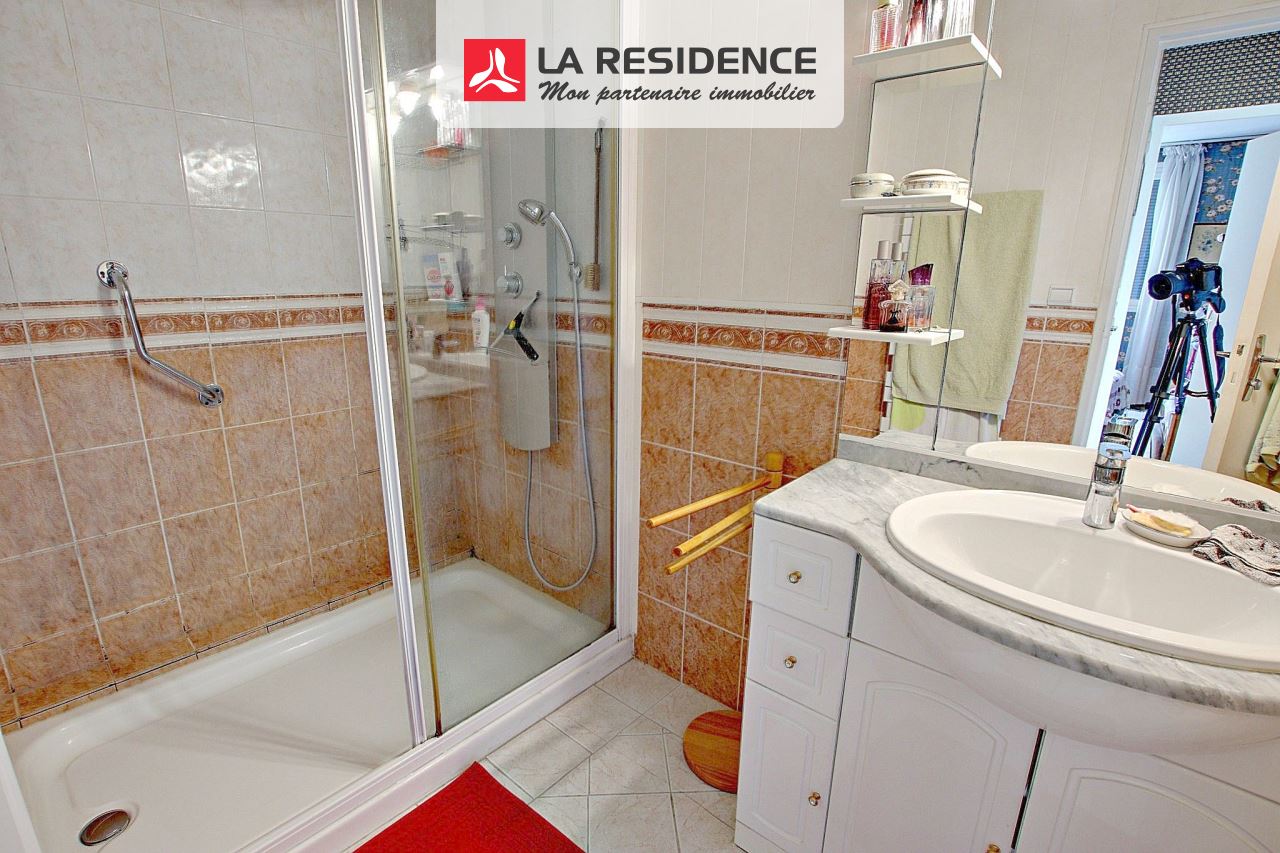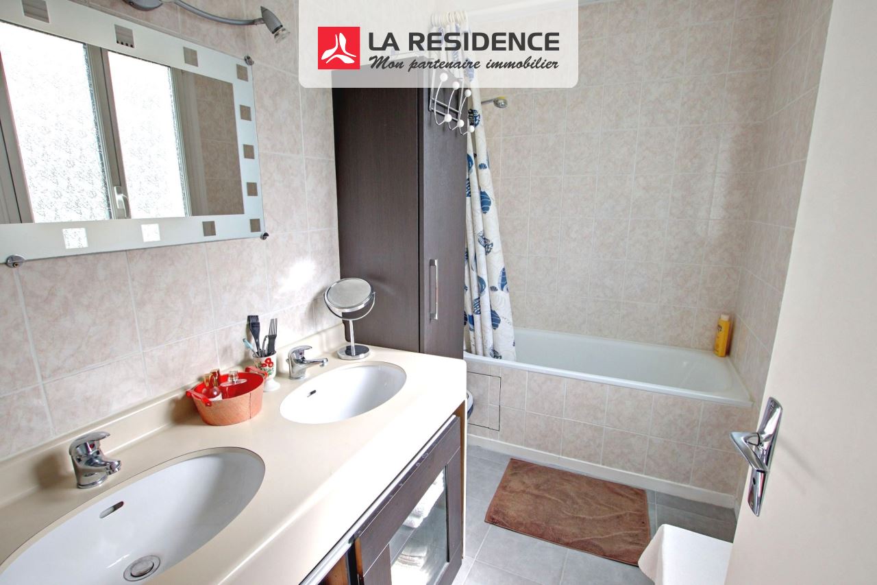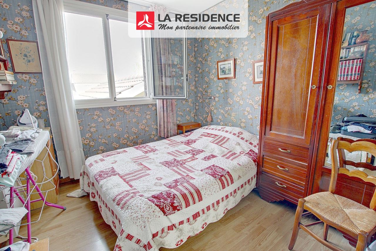 SITUATION EXCEPTIONNELLE, AU CALME - Maison 3 chambres. La Résidence vous présente en EXCLUSIVITÉ cette maison de type jonquille, mitoyenne des deux côtés, située dans un quartier résidentiel, recherché où toutes les commodités sont accessibles à pied : commerces, écoles, collège... Vous apprécierez son sas d'entrée, sa GRANDE ET LUMINEUSE pièce à vivre de 35 m2 grâce à son exposition PLEIN SUD, sa cheminée, donnant sur une très jolie terrasse. Une grande cuisine, vous permettra de prendre des repas en famille et d'accéder à l'une des terrasses par une baie vitrée. Vous bénéficierez d'un très agréable jardin arboré, entièrement clos, sans aucun vis-à-vis. WC séparé avec lave main. A l'étage, un pallier dessert trois chambres (9/11/15,5m2) dont une très grande suite parentale, extrêmement lumineuse grâce à sa baie vitrée avec sa salle de bain privative et son dressing. Chaque chambre possède des placards. Vous profiterez d'une salle de douche et d'un WC séparé. Garage. A ce prix là vous pourrez refaire votre intérieur à votre goût. Vous avez tout à gagner en la visitant.