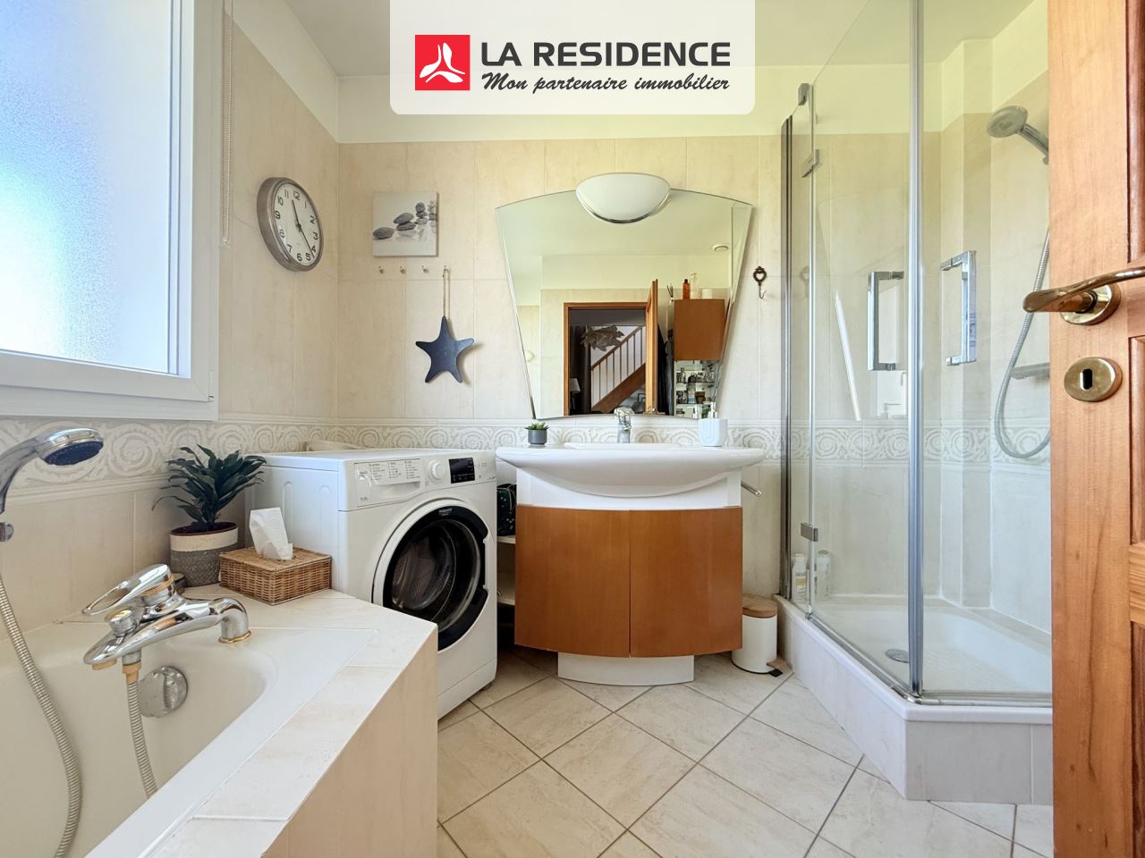 Salle de bains avec baignoire et douche