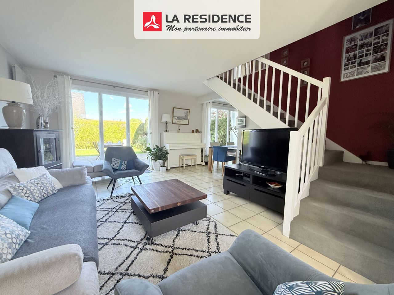 Double séjour / salle à manger lumineux, avec accès direct aux terrasses et au jardin