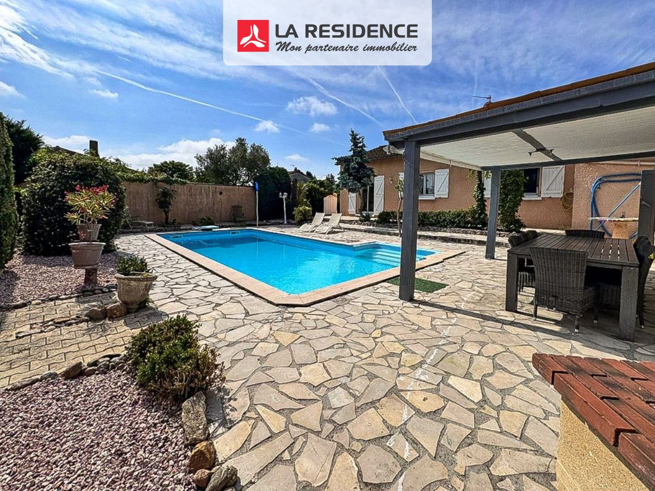 À l'extérieur, profitez d'un jardin soigné avec une piscine qui invite à la détente et aux moments de convivialité. Cet espace sans aucun vis-à-vis est un véritable atout ! Vous y trouverez également une cuisine d'été, comprenant un coin salon pour se détendre en toute tranquillité, ainsi qu'une salle d'eau pratique pour vos journées en extérieur.