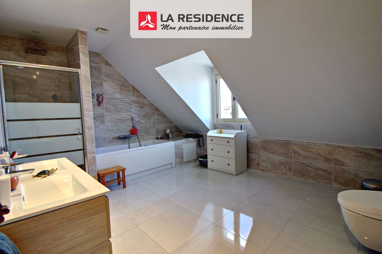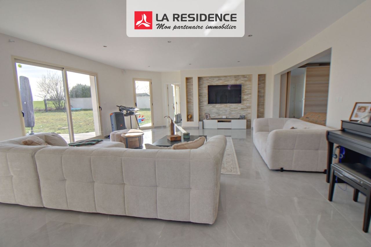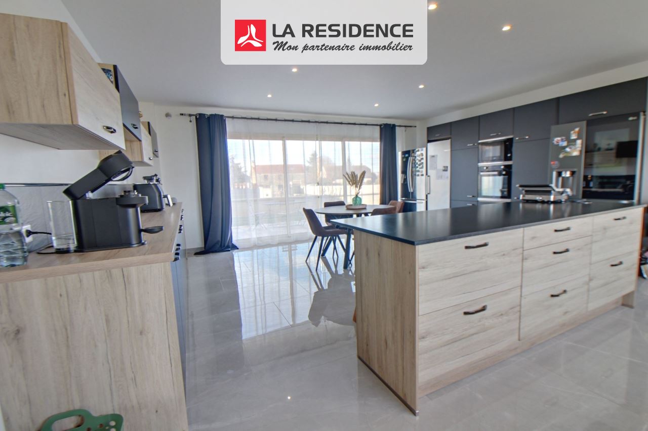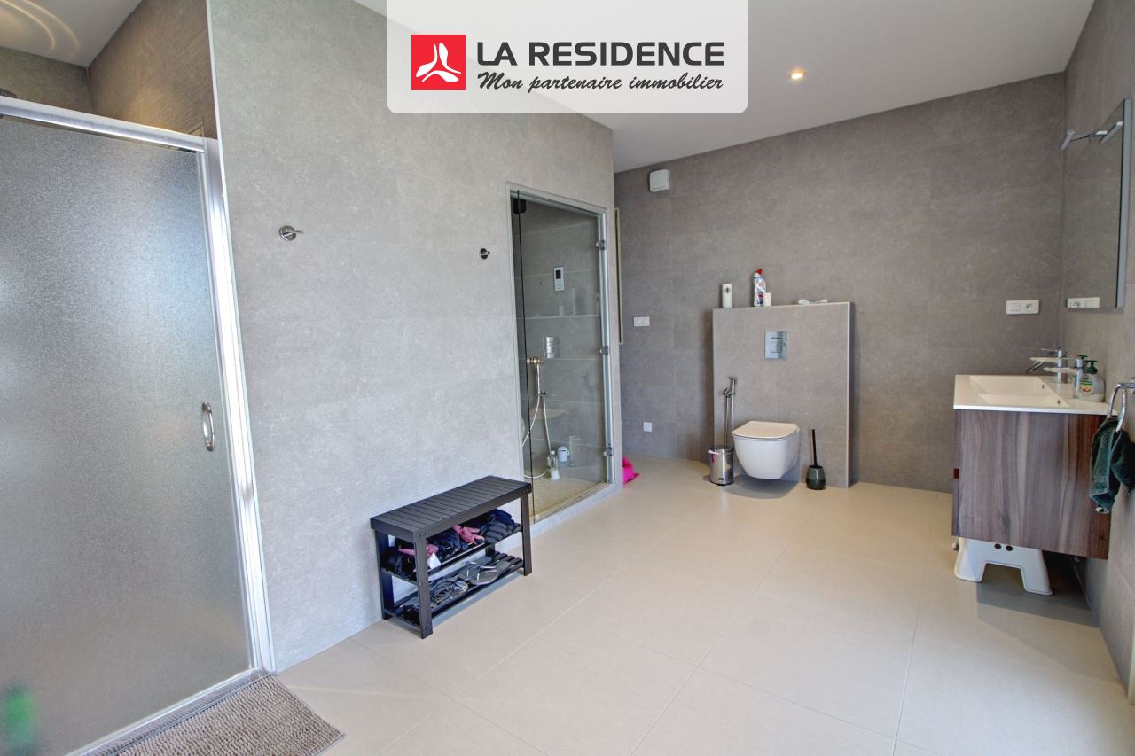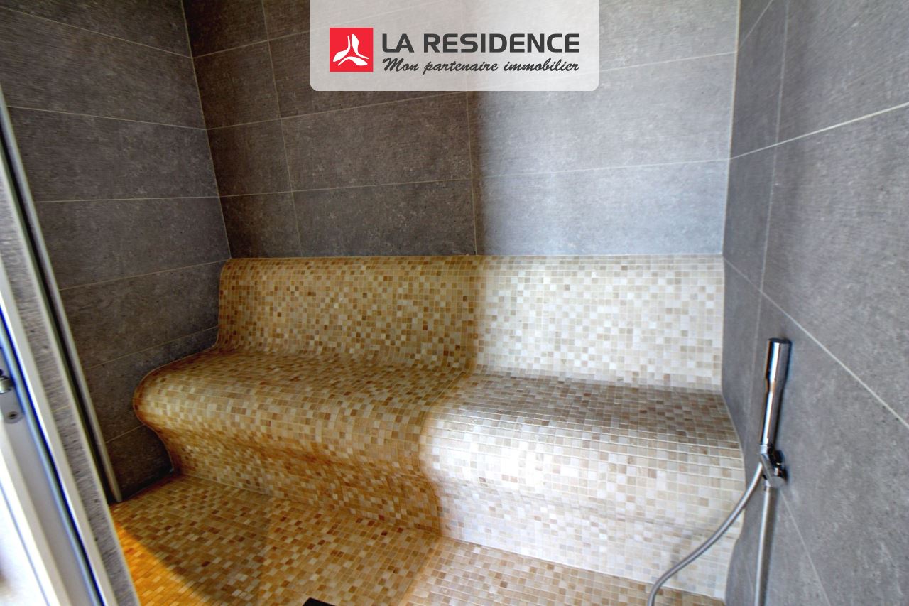 Volumes et prestations s'unissent pour vs séduire.Dans une petite résidence sécurisée maison contemporaine de 340m2 habitables environ sur cave totale vous propose : hall d'entrée, cuisine équipée de 40m2 environ, séjour triple avec salle à manger, wc/lave mains, grande salle d'eau avec hammam, 2 chambres. ETAGE : vaste pièce palière de 60m2 environ, 4 chambres dont une grande suite parentale avec salle de bain/douche et wc. Terrasse, garage double, terrain clos de 2003m2.Huisseries en ALU, chauffage au sol, pompe à chaleur air/eau. Venez la visiter, car je ne vous ai pas tout dit.