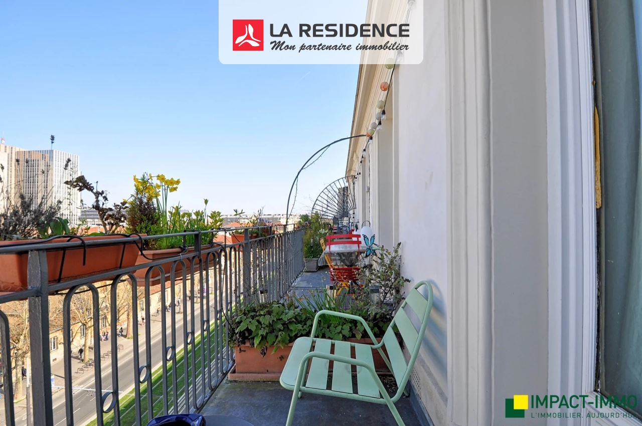 Porte de Saint Ouen, au 6ème étage avec ascenseur d'un superbe immeuble ancien, appartement 4 pièces ayant gardé tout le charme de l'ancien offrant séjour ouvrant sur grand balcon de 15 m2 sans vis à vis, cuisine américaine, salle à manger, 2 chambres donnant sur balcon, petite chambre donnant sur cour, salle de bains avec WC, salle de douche, buanderie, 2 caves. Beaucoup de charme. DPE D. Très rare!