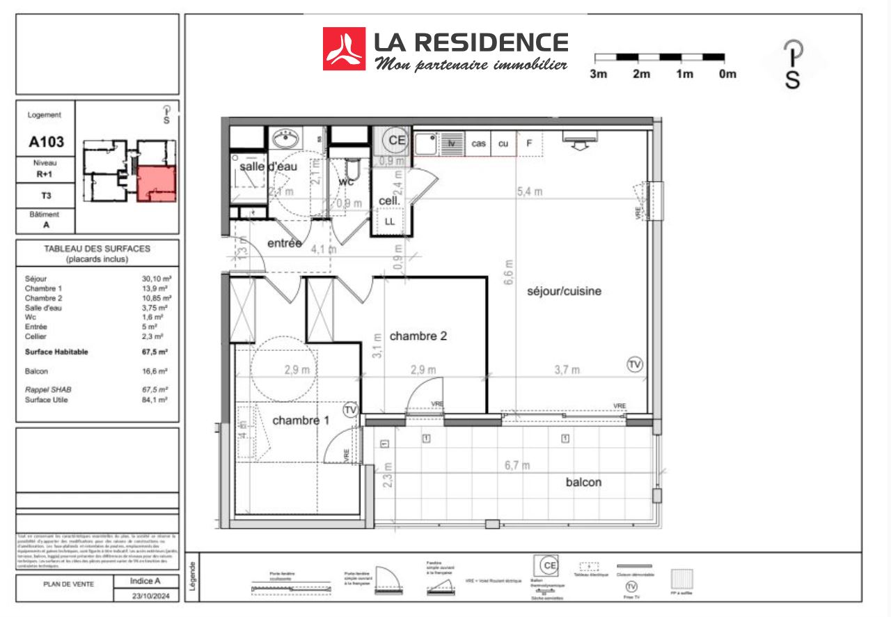 Vendu appartement 68m² / 3 pièces / 2 chambres à Saint-Aunès
